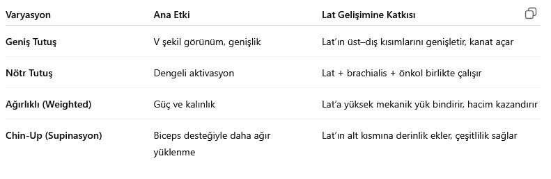 Kas gelişiminin yavaşlamasının sebeplerinden birisi, yapılan hareketlere karşı kazanılan adaptasyondur. Ben de barfiksteki tutuş tiplerinde, hacimde, set sayılarında vs. değişiklik yaparak adaptasyonu aşmaya çalıştım. Bazen çapraz setler yaptım.