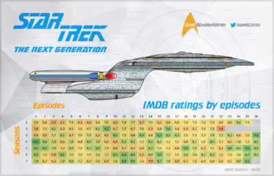 Uzay Yolu: Yeni Nesil (Star Trek: The Next Generation), bana göre en iyi bilimkurgu dizilerinden birisi. Her bölümde farklı bir … Okumaya devam et Uzay Yolu: Yeni Nesil bölümlerinin IMDB puanları (infografik)
