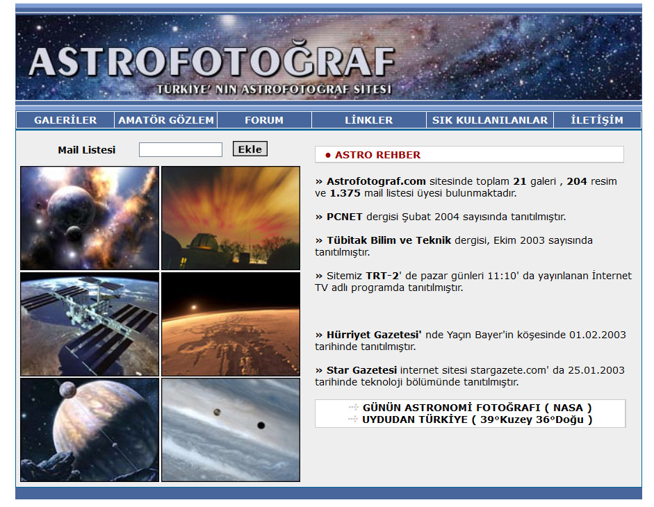 Bilime olan derin ilgimse bir nevi hobi düzeyinde kaldı ve Türkiye’nin ilk geniş kapsamlı bilim sitesi olan Bilim.org‘u (2002) ve kardeş sitesi Astrofotograf.com‘u kurmama vesile oldu.