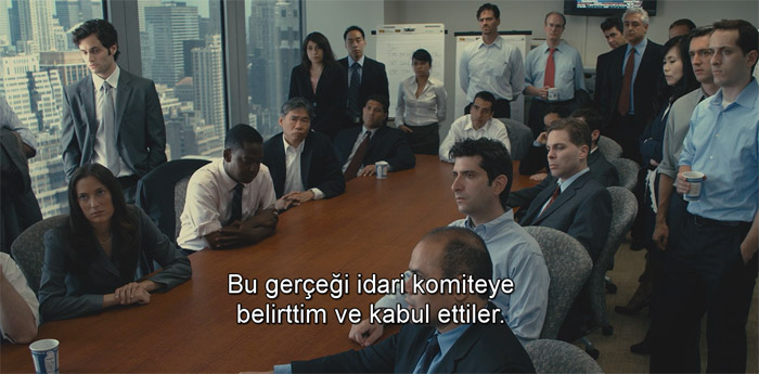 Çöküşün tetiklediği bir işten çıkarmalar zincirinde sıranın kime geleceği endişesi, en tepedekilerin durum karşısındaki rahatlığı ve üst düzey yöneticilerin maaşlarının sorgulanması ile tam anlamıyla vahşi kapitalizmin şirketler tarafındaki güzel bir özeti Margin Call. Filmin en akılda kalıcı kısmı ise yönetim kurulu toplantısı sahneleri elbette.